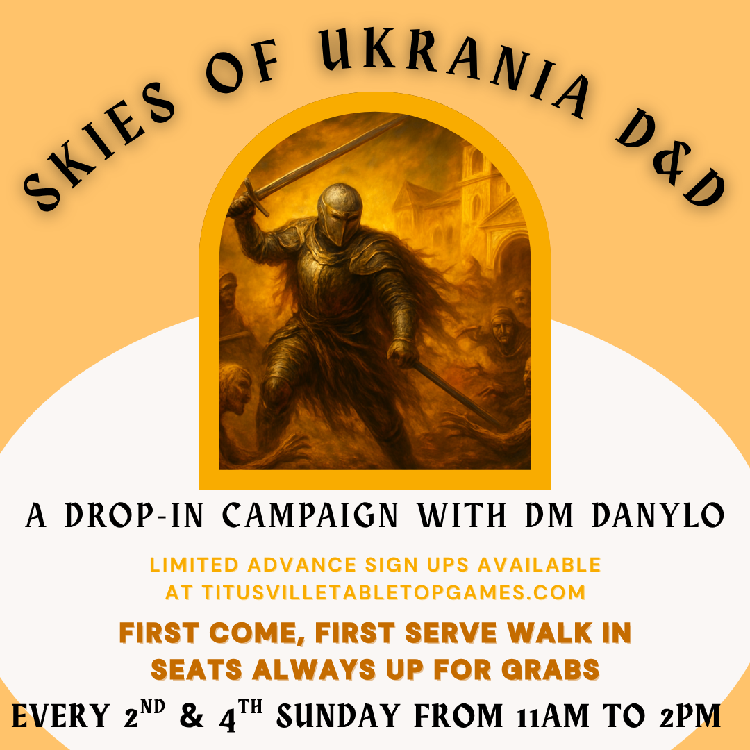 Tuesdays at 7:30PM. Join DM Lee for an adventurous dungeons and dragons campaign.
